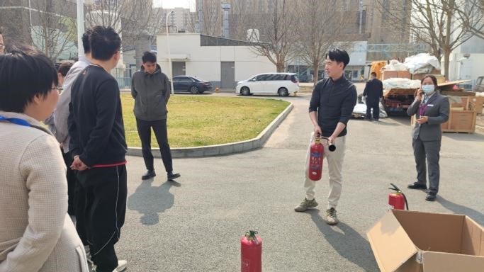 演练活动首先由中心安全管理专员万沛铮老师分别从演练方案、空间布局、仪器设备、存储情况进行了介绍,随后对应急防护器材使用方法进行了详细讲解和演示,包括紧急冲淋洗眼器、呼吸防护面罩、化学品吸附材料。讲解结束后,参加演练的师生按照消防疏散规范迅速有序地从安全通道撤离,并在户外就二氧化碳灭火器和干粉灭火器的使用方法和注意事项进行了使用培训及演练。