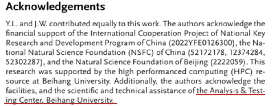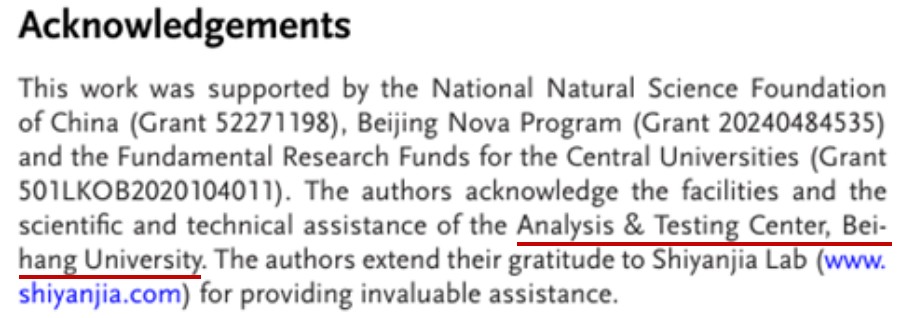 分析测试中心参与了以上研究的服务保障和技术支持,研究团队在刊发的论文中对分析测试中心进行了致谢。